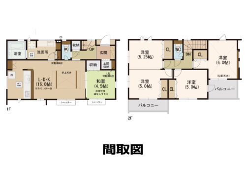 間取内容 | 和室4.5畳 1階 1室 LDK16.0畳 1階 1室 洋室5.0畳 2階 1室 洋室6.0畳 2階 1室 洋室10.25畳 2階 1室 | ||